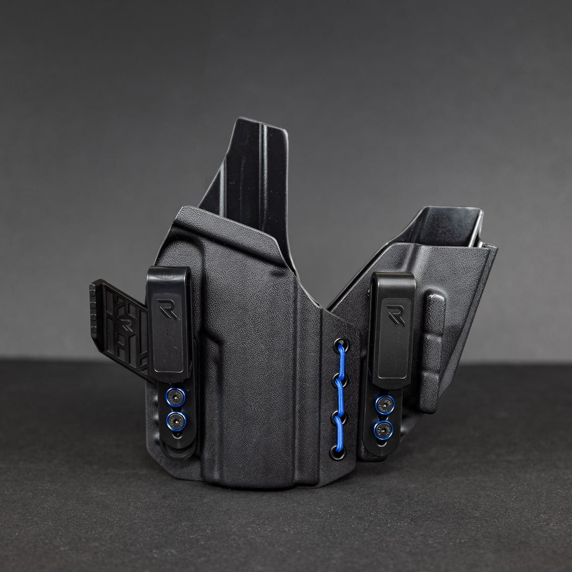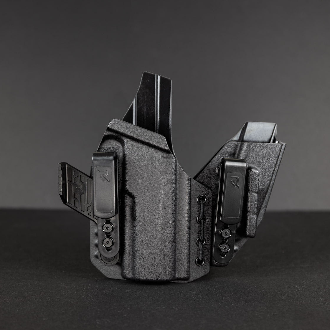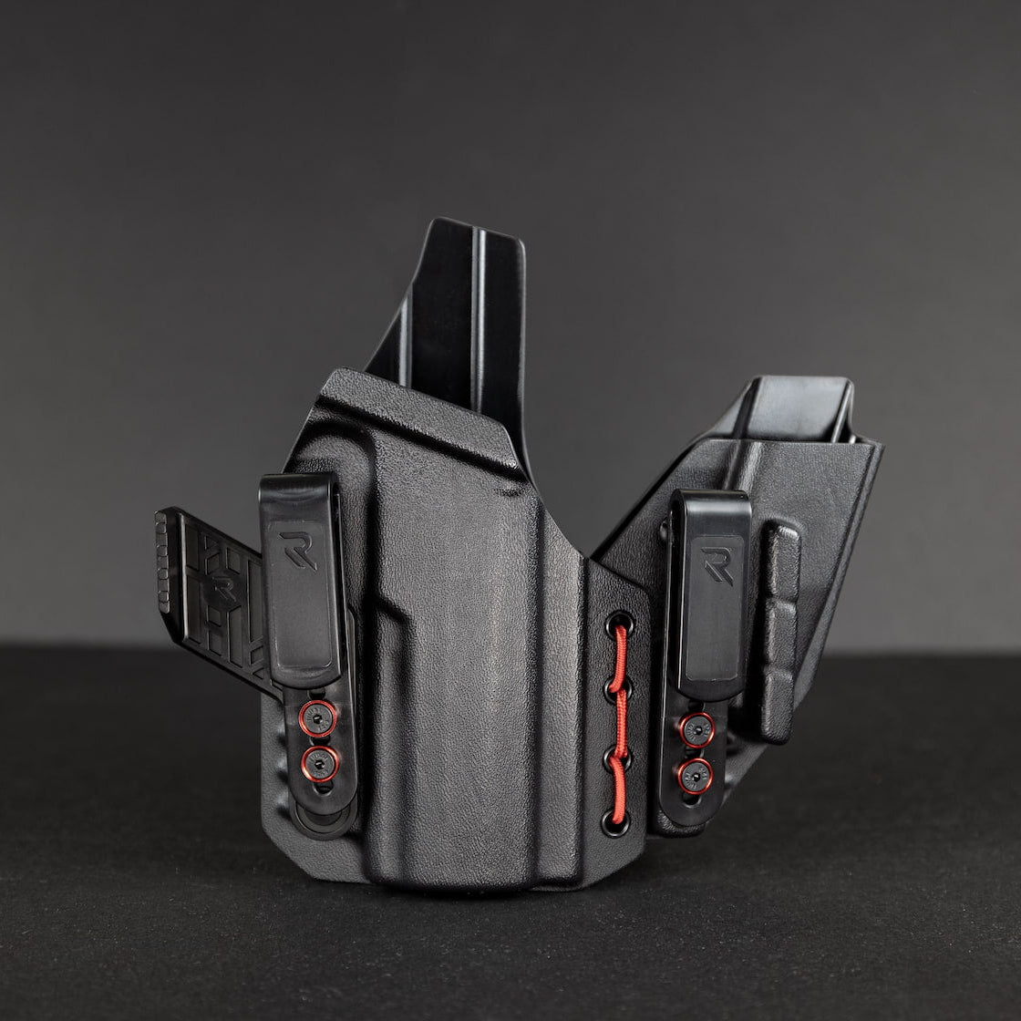 • Dual pocket clips secure your firearm on your waistline, providing a consistent purchase point every time.