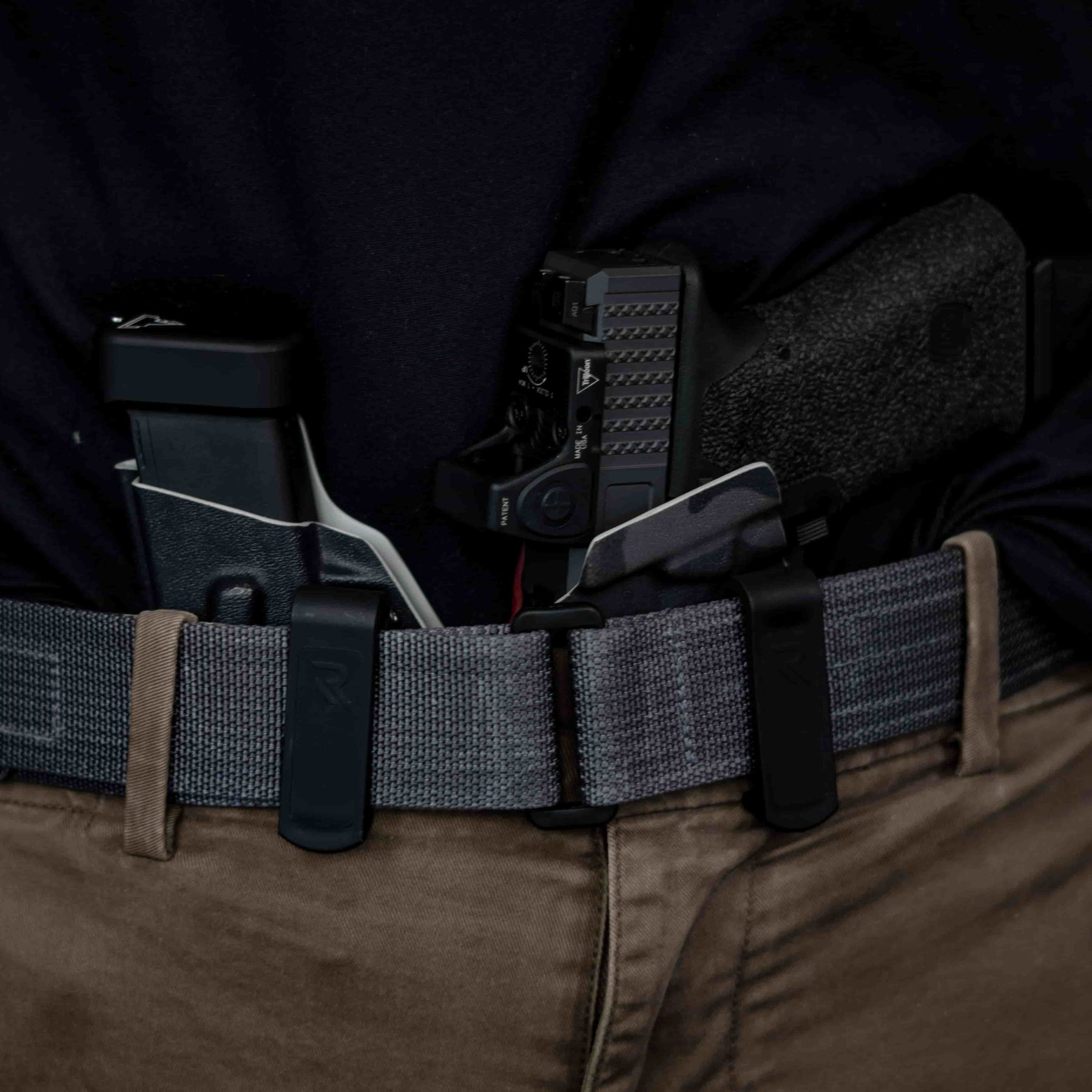 • Dual pocket clips secure your firearm on your waistline, providing a consistent purchase point every time.